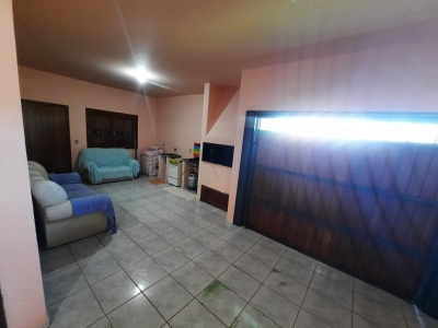Casa com 2 dormitórios, sala, cozinha, 1 banheiro social, área de serviço, garagem para 2 carros com churrasqueira e patio fechado.