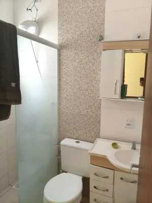 Geminado 3 dormitórios, 2 banheiros, sala e cozinha, pátio fechado, churrasqueira, abrigo para carro.