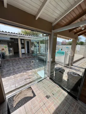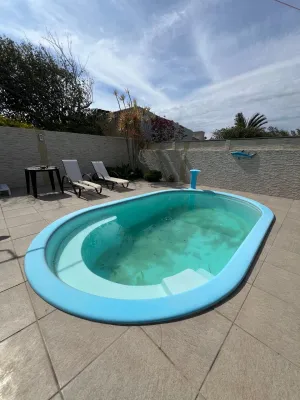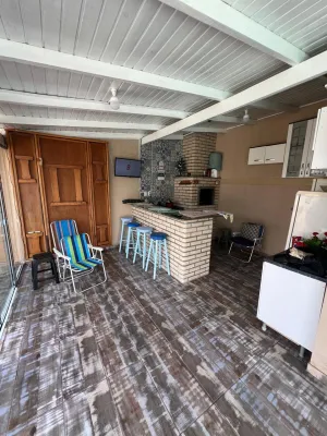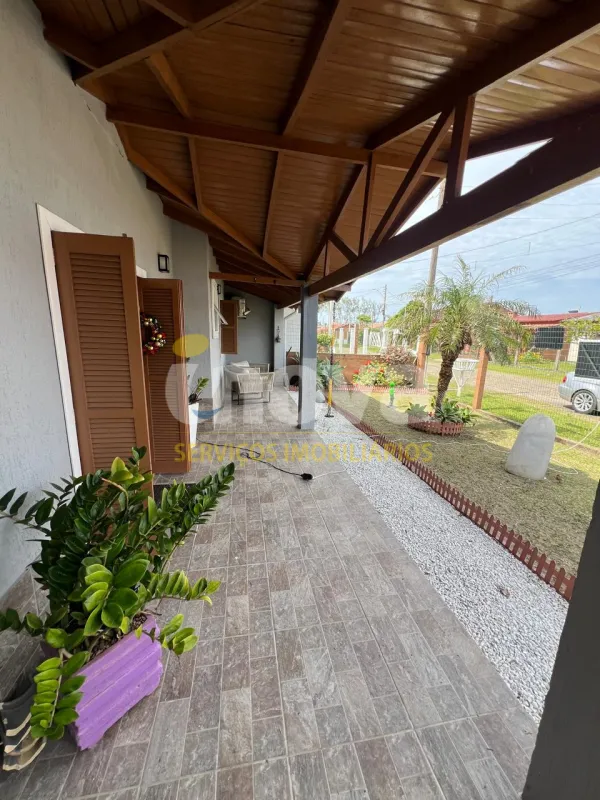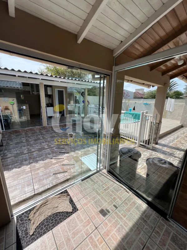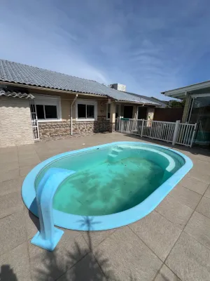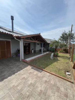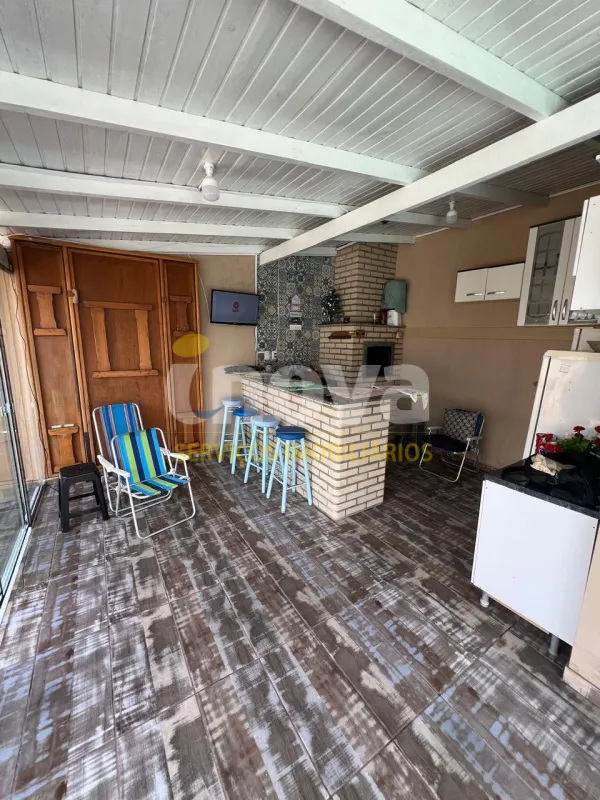 Casa à venda na praia de Nova Tramandaí com 3 dormitórios sendo uma suíte, sala de estar e jantar, cozinha, área de serviço, garage para carro, lareira, quiosque com churrasqueira, piscina, pátio cercado, semi mobiliada.