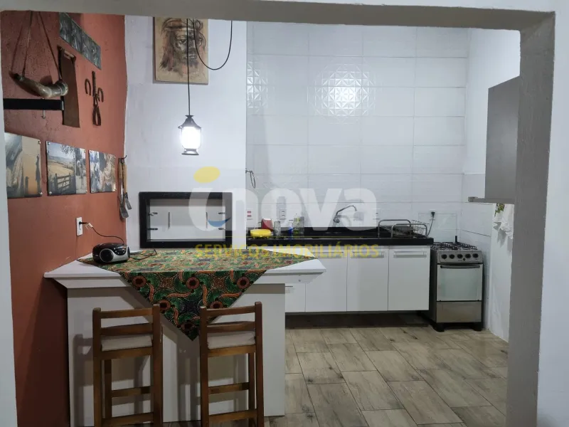 Casa geminada a poucas quadras do mar com 2 dormitórios (sendo 1 suíte), 1 banheiro social, sala de estar, sala de jantar, cozinha gourmet, área de serviço, churrasqueira, abrigo para 2 carros, sistema de alarme, portão eletrônico, playground, toda reformada, semi-mobiliada
