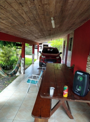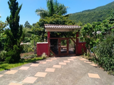 Belo sitio em Itati na Rota do sol , com residência de alvenaria com 3 dormitórios, 2 banheiros , sala , cozinha, área de serviço, churrasqueira, garagem para carro, com riacho próximo.