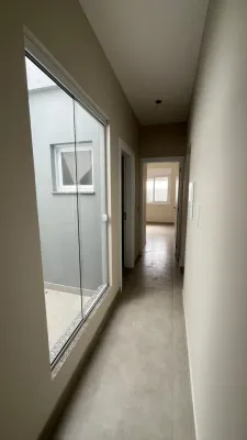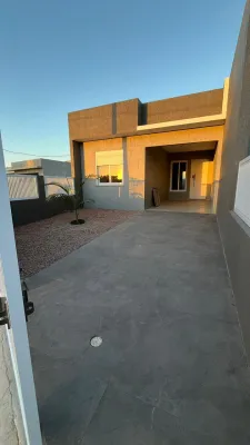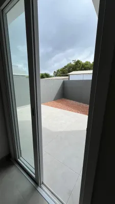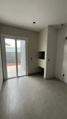 Casas novas em obra, com pátio privativo, 79m2, 2 dormitórios sendo 1 suíte, banheiro social, sala e cozinha integrados, lavanderia, garagem, pátio na frente e nos fundos, espera para água quente e split, excelente padrão de construção. Entrega em 3 meses.