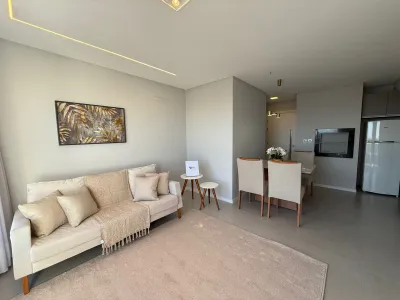 Apartamento composto por um suíte, sala de estar e jantar em ambiente integrado, lavabo, mobiliado e decorado, churrasqueira, forno embutido, microondas, cooktop, lavanderia, split. box para o carro 07, elegante área de lazer.