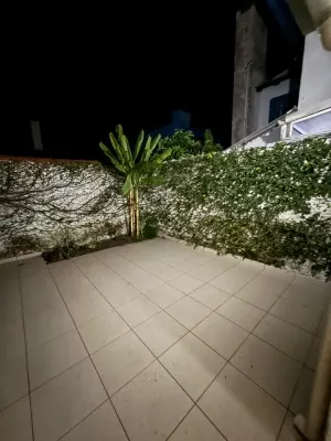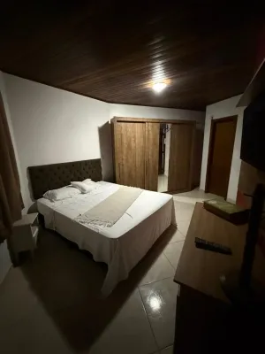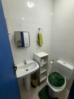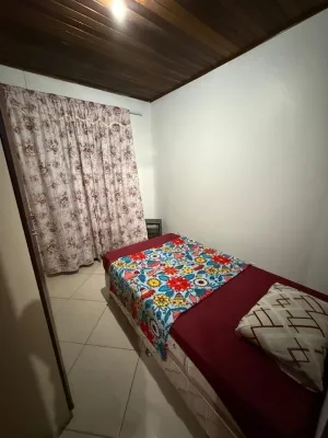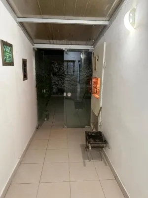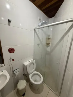 Sobrado com 03 dormitórios, uma suíte, banheiro social, lavabo, cozinha, área de serviço, churrasqueira, garagem com uma vaga coberta, laje de concreto e na parte superior forro de madeira, pátio na frente compartilhado, pátio nos fundos particular , aceita pet pequeno, sacada em todos os quartos